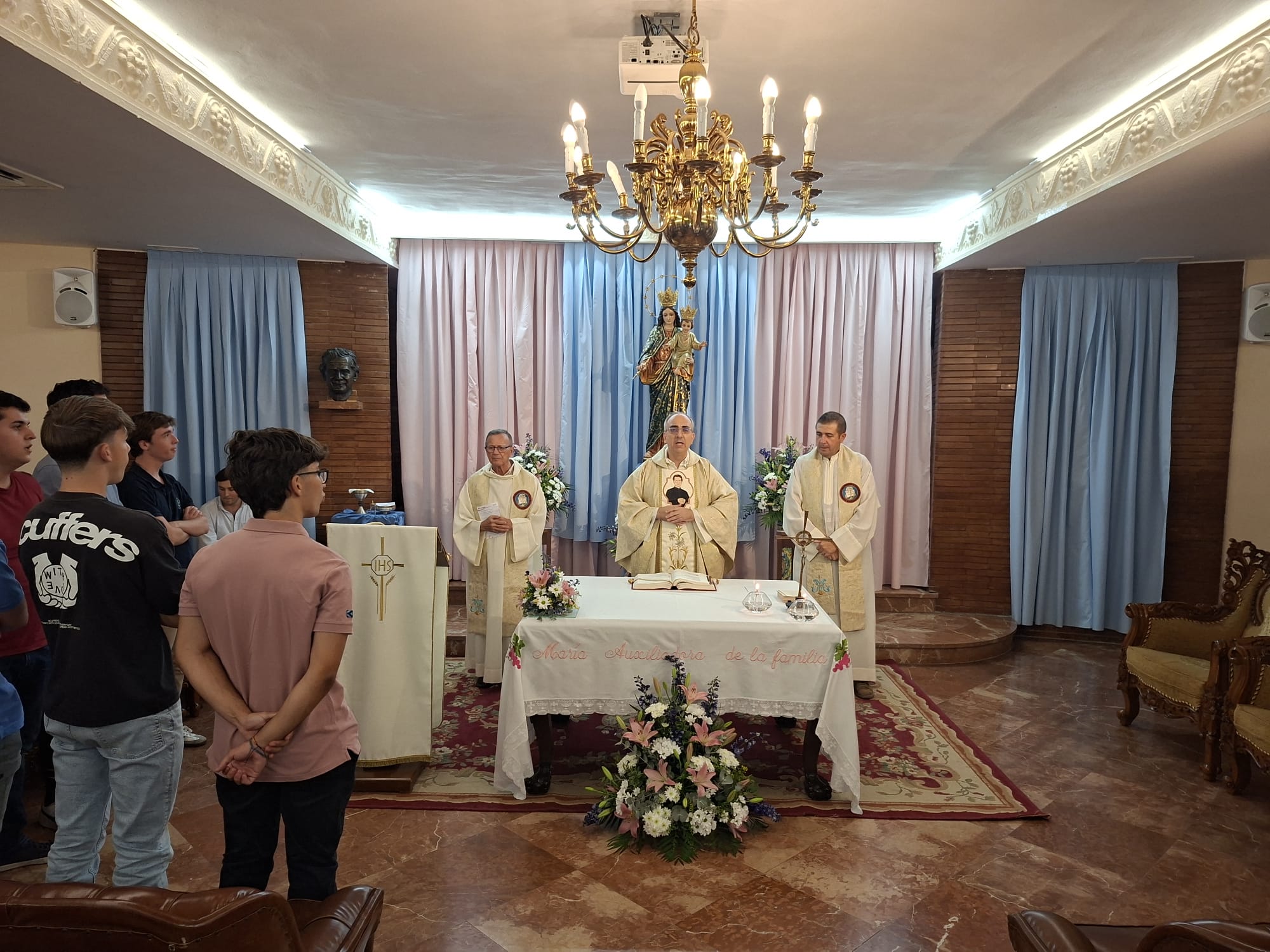 El lunes 29, aprovechando el onomástico del director por San Miguel, tuvimos la celebración de sus bodas de plata sacerdotales junto a las de don Fernando Miranda -presidente del Patronato del Colegio Mayor, quien también la celebra este año 2025, y a las bodas de oro de don Luis Fernando Álvarez, director espiritual de la casa. Fue una celebración sencilla pero emotiva, en la que dimos gracias al Señor por la vocación sacerdotal y por estos años de fidelidad y de entrega a la misión sacerdotal en la Congregación Salesiana. Al terminar al celebración, seguimos compartiendo su alegría con toda la comunidad colegial en la cena barbacoa. ¡Felicidades y a por otros 25 años!